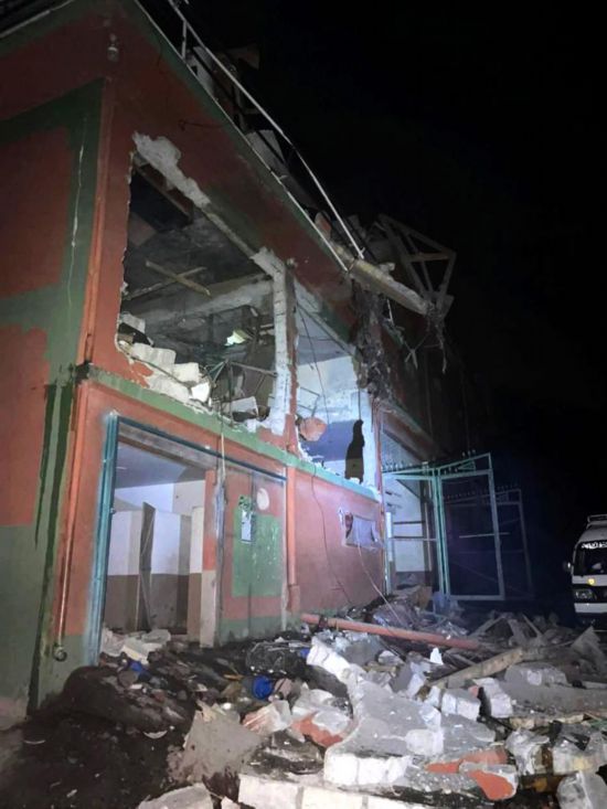 这是5月7日在巴控克什米尔地区穆扎法拉巴德拍摄的印度导弹摧毁的建筑(手机照片)。新华社发