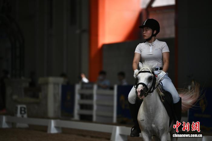 图为参赛选手正在进行盛装舞步比赛。中新社记者 韩苏原 摄