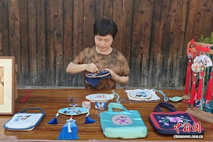 “刺绣图案以动植物、自然元素和文化符号组合而成,蕴含祈福纳吉的寓意。”张春梅将传统技艺与现代审美相结合,绣制的服饰、手工布包、小挂饰、挂画等颇受欢迎。