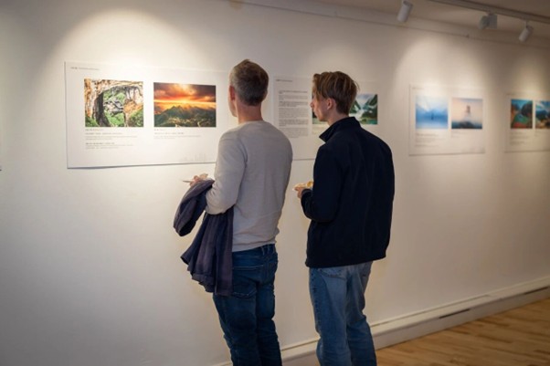 来宾观赏“江边山城”摄影展。斯德哥尔摩中国文化中心供图