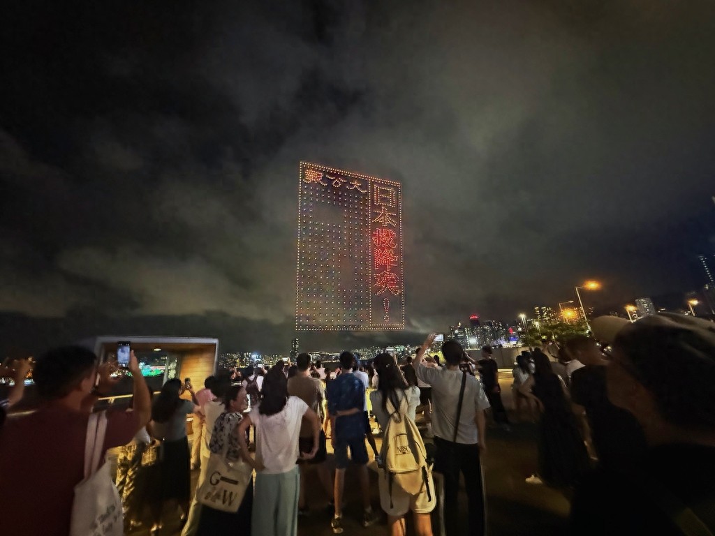 香港用无人机重现“日本投降矣”光影再现历史瞬间!8月30日晚上,湾仔海滨上演了一场纪念中国人民抗日战争暨世界反法西斯战争胜利80周年的无人机表演。1200架无人机在维港上空拼出了战机及乌蛟腾抗日英烈纪念碑等图案。