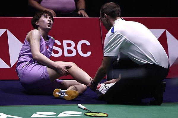 当最后一球韩国名将回球出界,陈雨菲通过极限防守扛住长多拍重压,拿下比赛。她跪倒在场上,用手掩住眼睛,心情激动。现在距离陈雨菲梦寐以求的世锦赛冠军和大满贯仅一步之遥。然而,在向观众致意后,走路一瘸一拐的陈雨菲被搀扶离场。