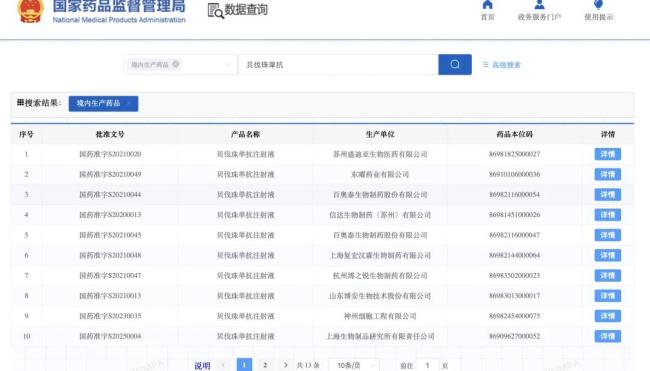 竞争更为激烈的当属贝伐珠单抗赛道,目前已形成“1+12”的竞争格局。除原研厂商罗氏之外,苏州盛迪亚、百奥泰、信达生物、复宏汉霖等12家国内企业均已获批。