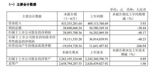 上半年净利润同比下降48%