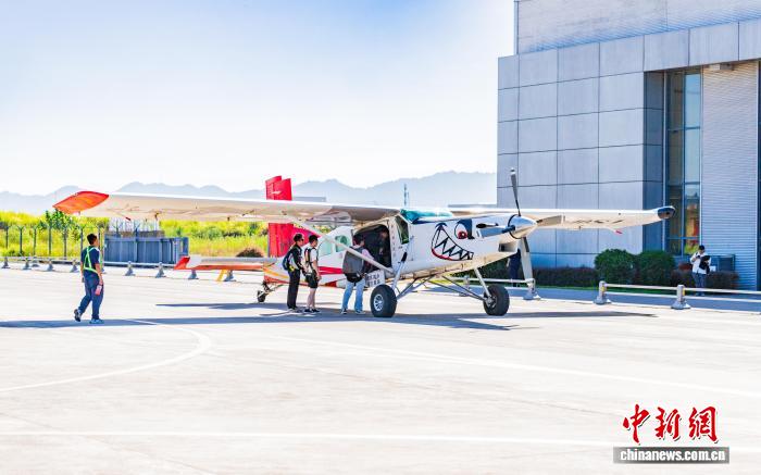 图为游客排队登机准备跳伞。黄维正 摄