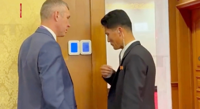 现场:俄朝安保人员交流用丰富手势比划