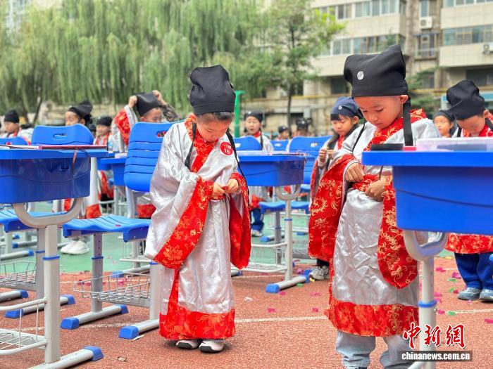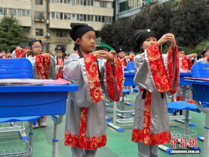 点朱砂写“人”字正衣冠 兰州一小学新生“开笔启智”
