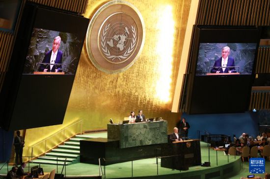 9月9日,联合国秘书长古特雷斯在第80届联大第一次全会上讲话。新华社记者 谢锷 摄