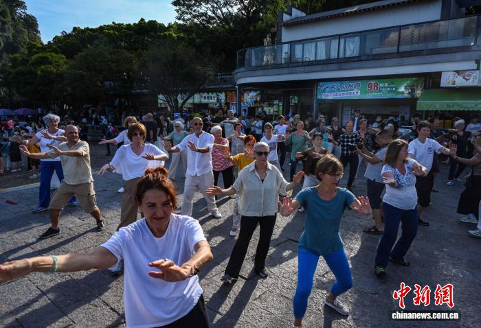 图为中奥太极爱好者共同练习健身气功。唐梦宪 摄
