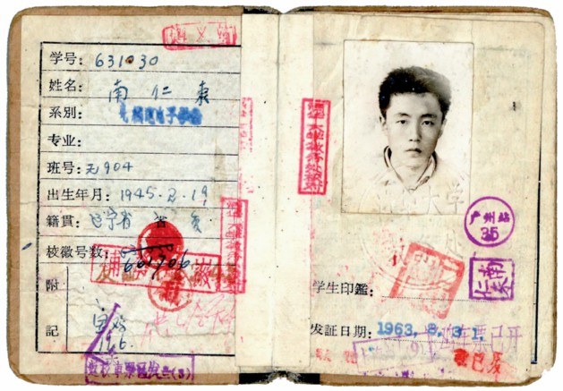 南仁东的清华大学学生证