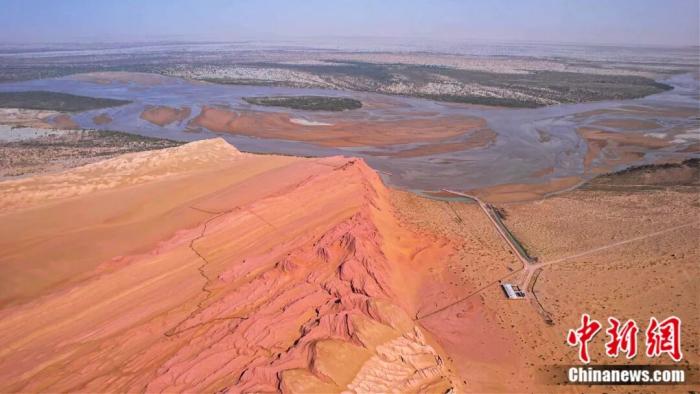 极目远眺,塔克拉玛干沙漠,在天地相接处