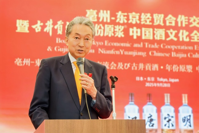 日本前首相鸠山由纪夫先生受邀出席活动,并与亳州市委常委、副市长钟治峰等嘉宾一起共同为“古井贡酒年份原浆文化研究院-东京中心”揭牌。