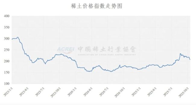 上海钢联的数据显示,轻稀土中的氧化镨钕均价从年初约44万元/吨涨至9月30日的56.2万元/吨,累计涨幅约27.7%;重稀土中的氧化镝涨幅更为突出,从年初约83万元/吨涨至10月中旬的260万元/吨,累计涨幅约212%。