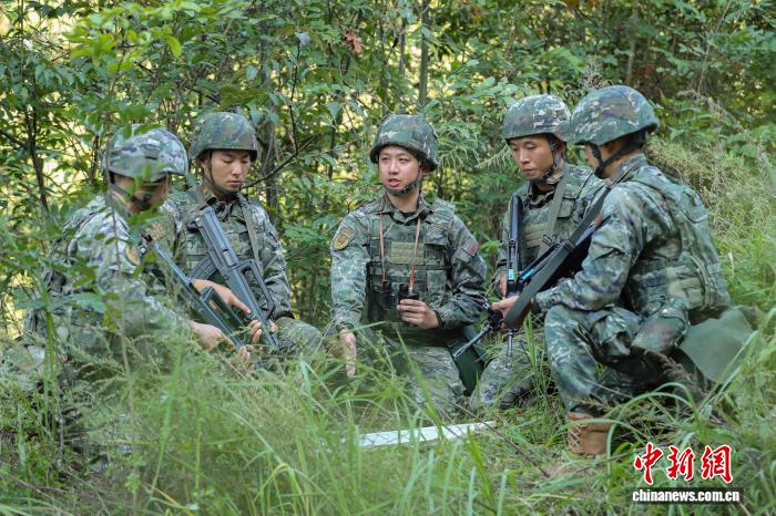 图为武警官兵进行地形分析。李东 摄