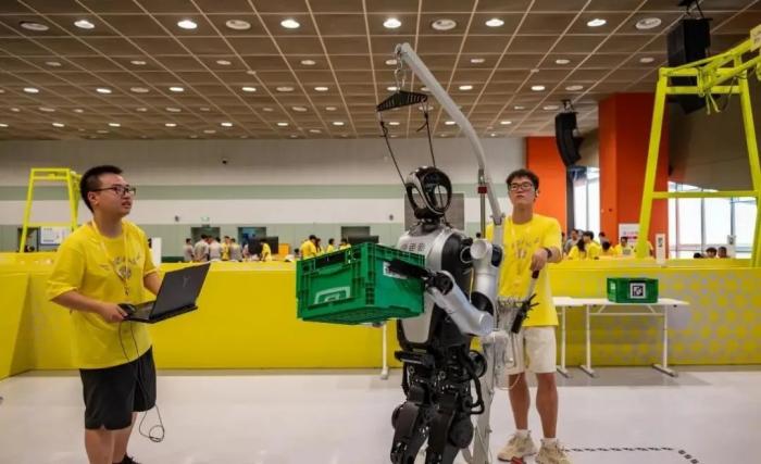 ▲2025年8月24日,第二十七届中国机器人及人工智能大赛人形机器人专项赛全国决赛在安徽省合肥市启幕。赛事吸引全国近400所高校的6000余名学生积极参与,围绕人形机器人前沿技术展开巅峰对决。图为人形机器人正在智能搬运。何玉 摄