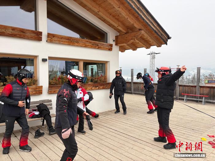 中国冬残奥高山滑雪队在意大利科尔蒂纳丹佩佐进行赛前训练。中新社记者 李京泽 摄