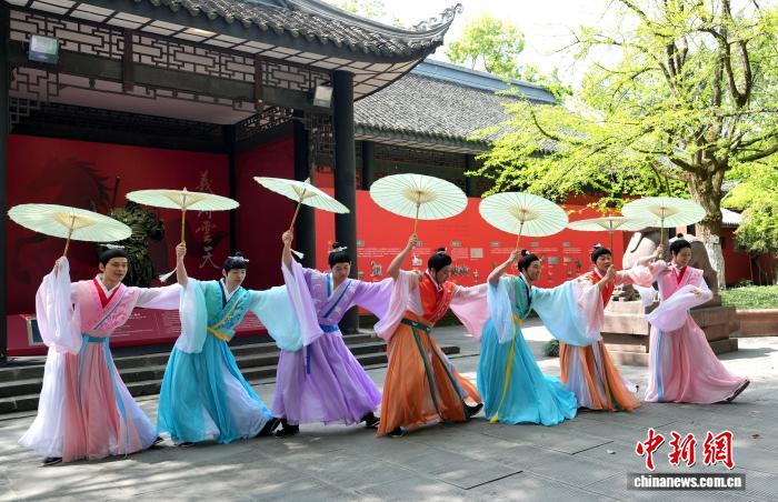 4月1日,四川成都,男子书生群舞《青衿赋》演出现场。中新社记者 安源 摄