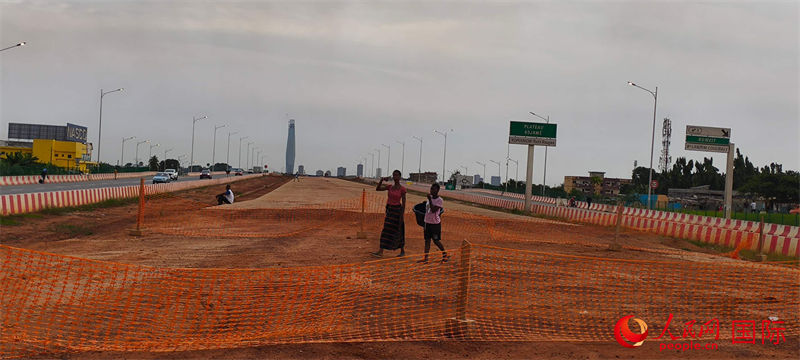 当地民众从BRT施工现场走过。人民网记者 黄培昭摄