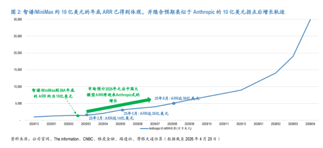 据摩根大通的测算,公司当前市值已经隐含了市场押注智谱2026年底ARR将达10亿美元,且还在押注它们突破10亿美元之后,能走出一条Anthropic式的增长曲线。