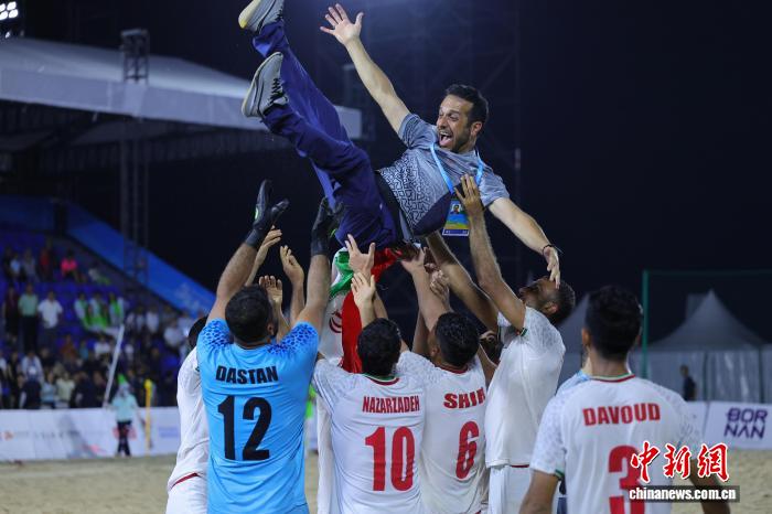 沙滩足球男子金牌赛,身为该项目亚洲传统豪强、沙滩足球亚洲杯“四冠王”的伊朗队迎战阿曼队。开场不到一分钟,伊朗队守门员直接攻门,造成对方后卫头球摆渡失误,皮球弹入阿曼球门。此后伊朗队一路领先,三节比赛战罢以6:2战胜对手,收入单日第6枚金牌。