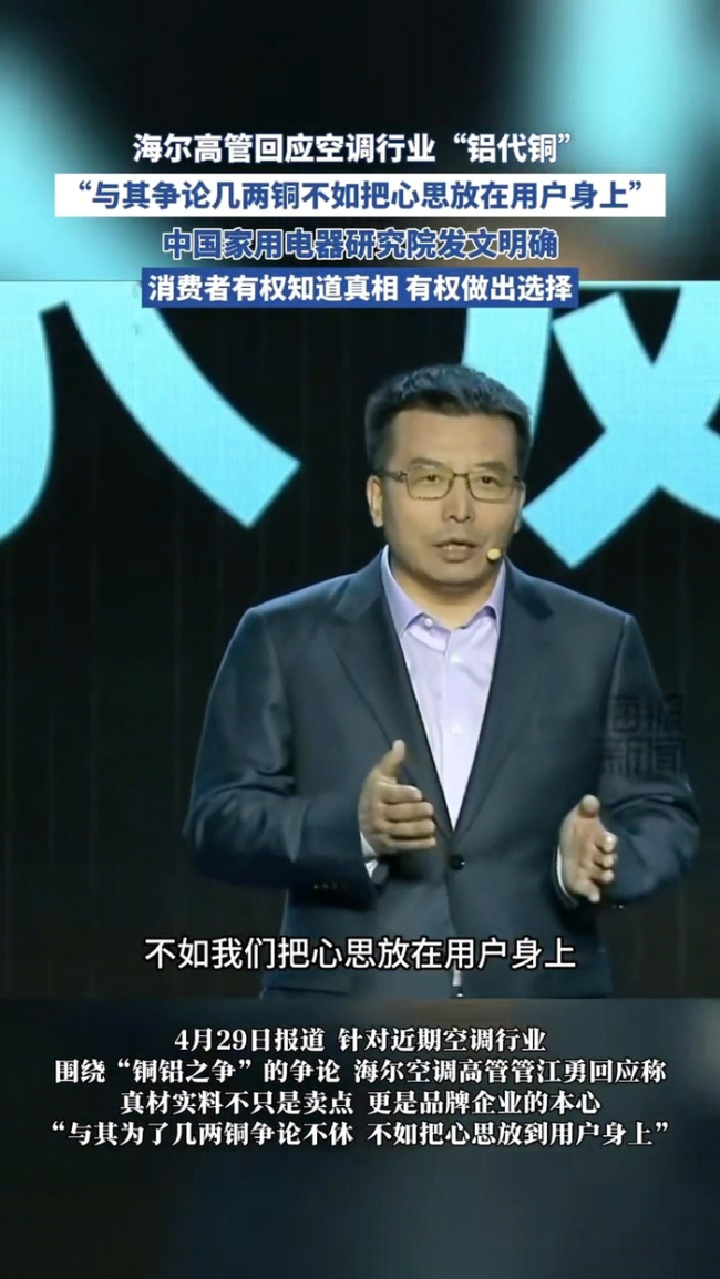 空调行业“铜铝之争”愈演愈烈,海尔高管正面发声表态直言不必执着于材料论战,真材实料是品牌本心,用户体验才是核心。