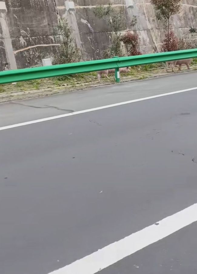 清明节期间,有网友发布了一段视频。一辆拉猪车在高速路上侧翻,整辆车歪倒在路肩上,车厢门摔得稀烂,里面的猪全部跑了出来。视频中,这些猪一点也不认生,下车后就开始四处溜达,有的闻闻这,拱拱那,悠哉游哉地散步,仿佛在逛自家后院