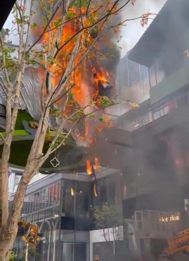 4月15日上午,有网友发布视频称苏州万象天地一处高处露天走廊上的绿色装饰物发生火情。视频显示现场浓烟滚滚、火势较大,大量火星溅到地面。网友表示有消防车到达现场