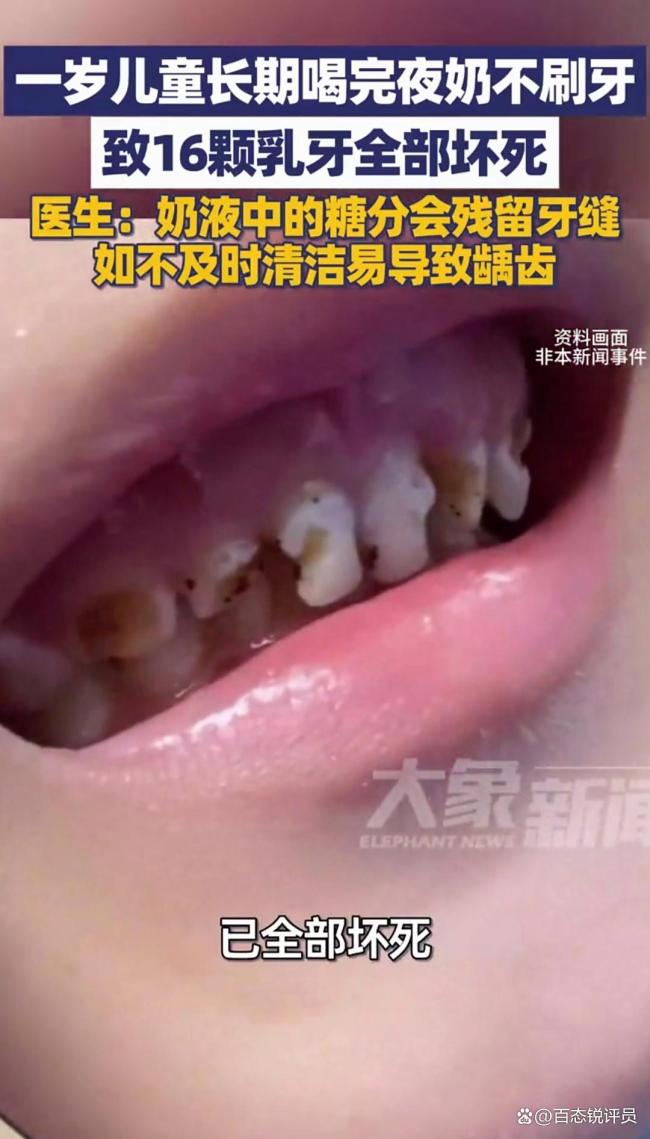 1岁儿童喝夜奶不刷牙致16颗牙坏死