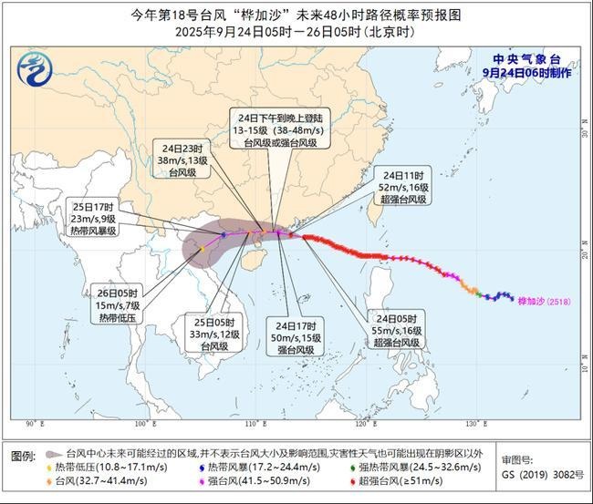 中国天气网讯 中央气象台9月24日06时继续发布台风橙色预警: 今年第18号台风“桦加沙”(超强台风级)的中心今天(24日)早晨5点钟位于广东省阳江市东偏南方向约255公里的南海北部海面上,就是北纬21.1度、东经114.3度,