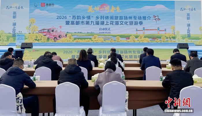 中新网扬州3月20日电 (徐珊珊 崔佳明)一湖春色,万顷花香。3月20日,2026“苏韵乡情”乡村休闲旅游扬州专场推介暨高邮市第九届湖上花海文化旅游季在高邮湖上花海景区启动。千亩油菜花竞相绽放,金黄的花田与万顷碧波