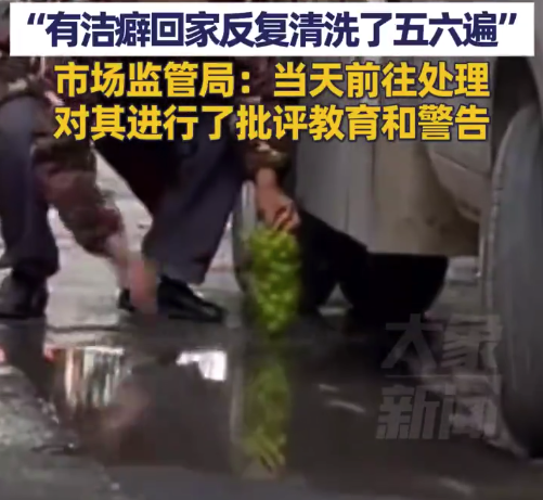 9月20日四川甘孜,顾客称水果贩用马路污水洗“阳光玫瑰”,“吃了半斤左右,因有洁癖回家反复清洗了五六遍”,22日市场监管局回应:联合综合执法局于当天前往处理,对涉事水果贩进行了批评教育和警告等方式。...