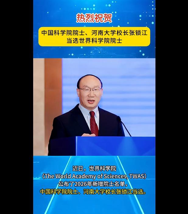 近日,世界科学院公布了2026年新增院士名单,中国科学院院士、河南大学校长张锁江当选。张锁江长期从事离子液体与绿色过程研究,解决了离子液体从基础到应用的关键科学技术难题,实现了多项原创技术的产业化应用,推动了离子液体工业化进程