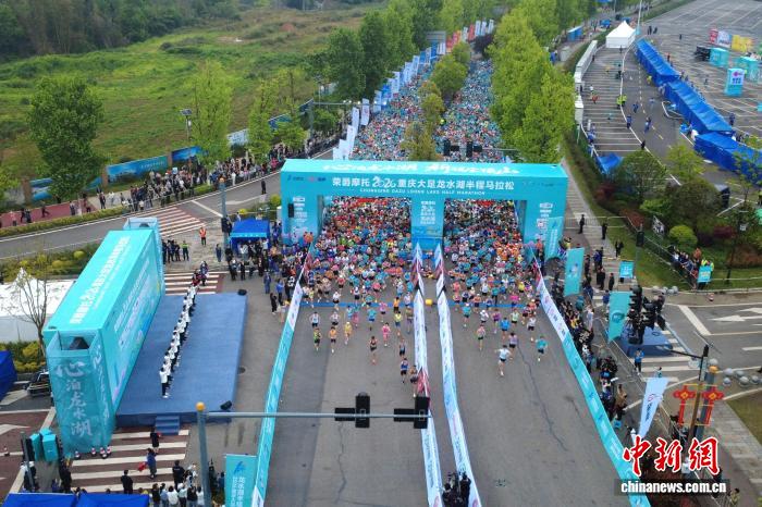 图为选手从起点出发。(无人机照片)中新社记者 肖江川 摄 图为选手从起点出发。(无人机照片)中新社记者 肖江川 摄