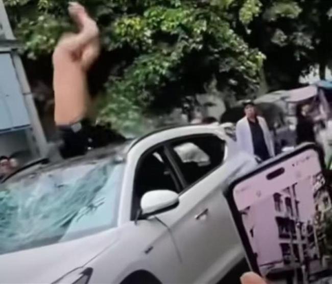 男子赤裸上身砸车被刑拘 不满轿车驶入拥挤路段